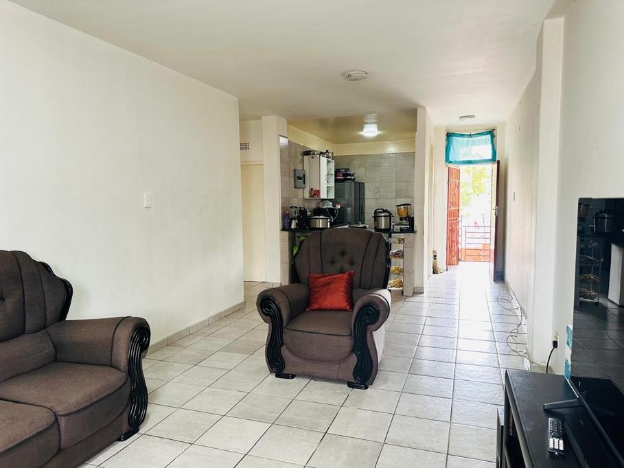 Discover this inviting residential property in Germiston South, offering a practical and comfortable living environment. The interior features an open-plan layout, seamlessly connecting the lounge and kitchen areas. Durable tiled flooring extends throughout, complemented by neutral white walls that provide a versatile canvas. The lounge benefits from ample natural light, creating a bright and welcoming atmosphere. The functional kitchen is equipped with essential appliances, including a stove and refrigerator, with tiled walls and floors for practicality, flowing effortlessly into the main living space.