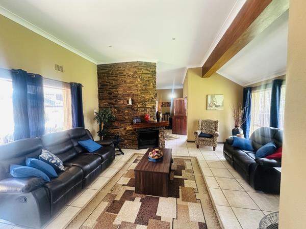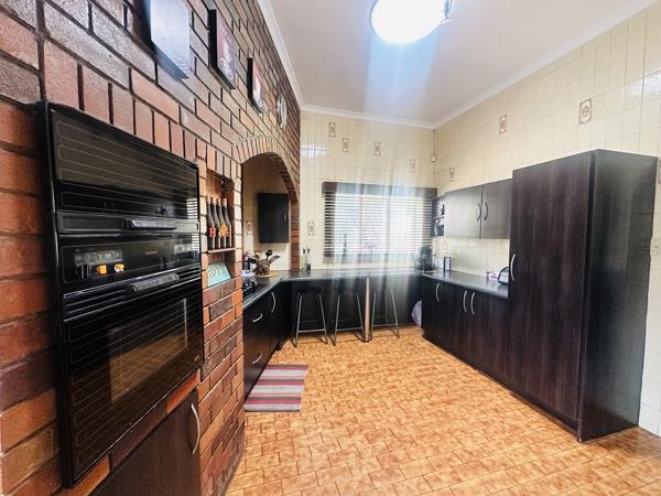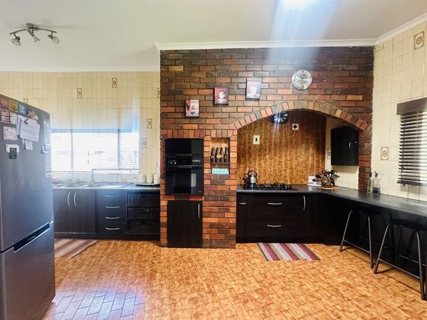 The country-style kitchen is a culinary dream, featuring an eye-level oven and a gas hob, making meal preparation a breeze. A built-in braai area offers a fantastic outdoor entertaining space for gatherings with family and friends. For parking, the property includes 2 garages, ensuring secure and convenient storage for vehicles.