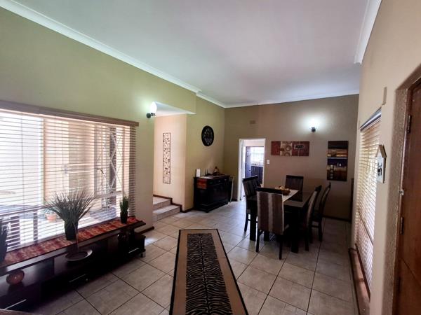 Outside, the property features a private patio perfect for outdoor relaxation and a well-maintained garden, ideal for children and pets. Parking is well catered for with two garages, and pets are allowed, making it ideal for families. Enhanced security features include an alarm system, access gate, and a totally walled perimeter, ensuring a safe environment for residents. Hazelpark is a well-regarded suburban community in Germiston, known for its family-friendly atmosphere and convenient access to local amenities.