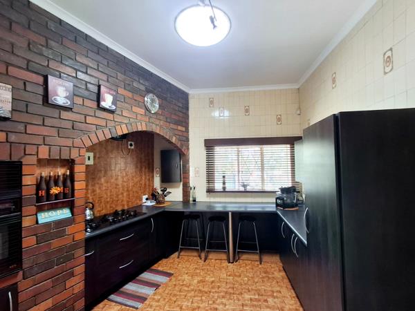 Discover this inviting 4-bedroom, 2-bathroom family home situated on a generous 1018 sqm erf in the established suburban area of Hazelpark, Germiston, South Africa. The property immediately impresses with its well-maintained lawn, mature trees, and paved driveway, offering excellent kerb appeal. Security is paramount, with visible burglar bars and a security gate enhancing peace of mind.