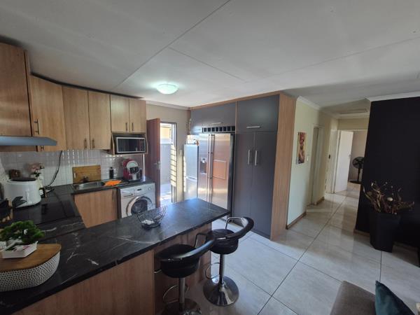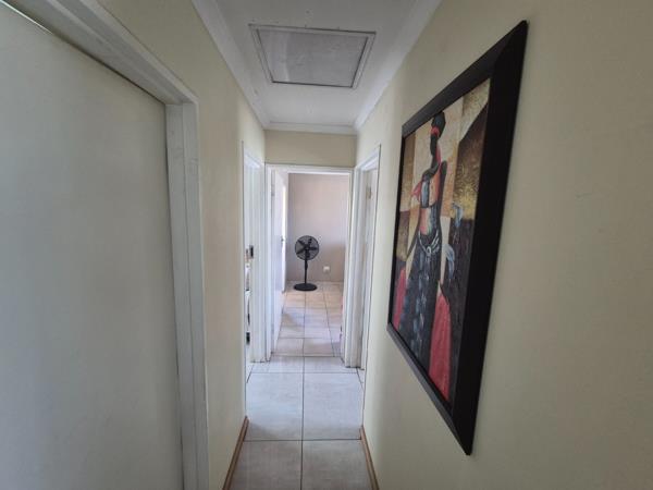 The property boasts of 3 bedrooms, all with built-in cupboards, 2 modern bathrooms, 1 of which is main en-suite.