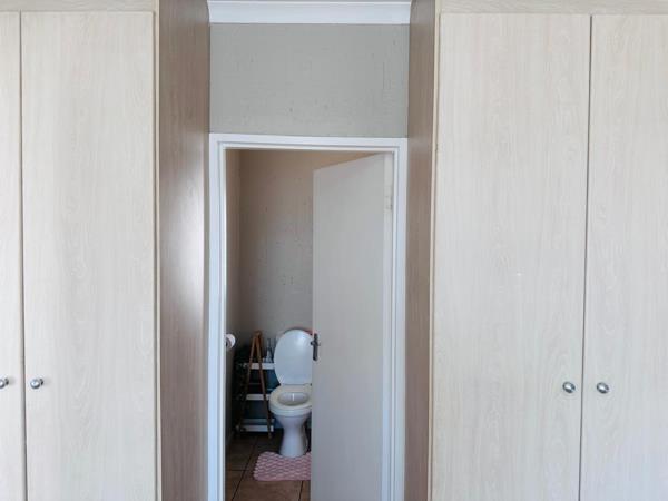 The bedroom is generously sized and includes built-in cupboards for ample storage. The single bathroom is neat, functional, and easily accessible from the bedroom.