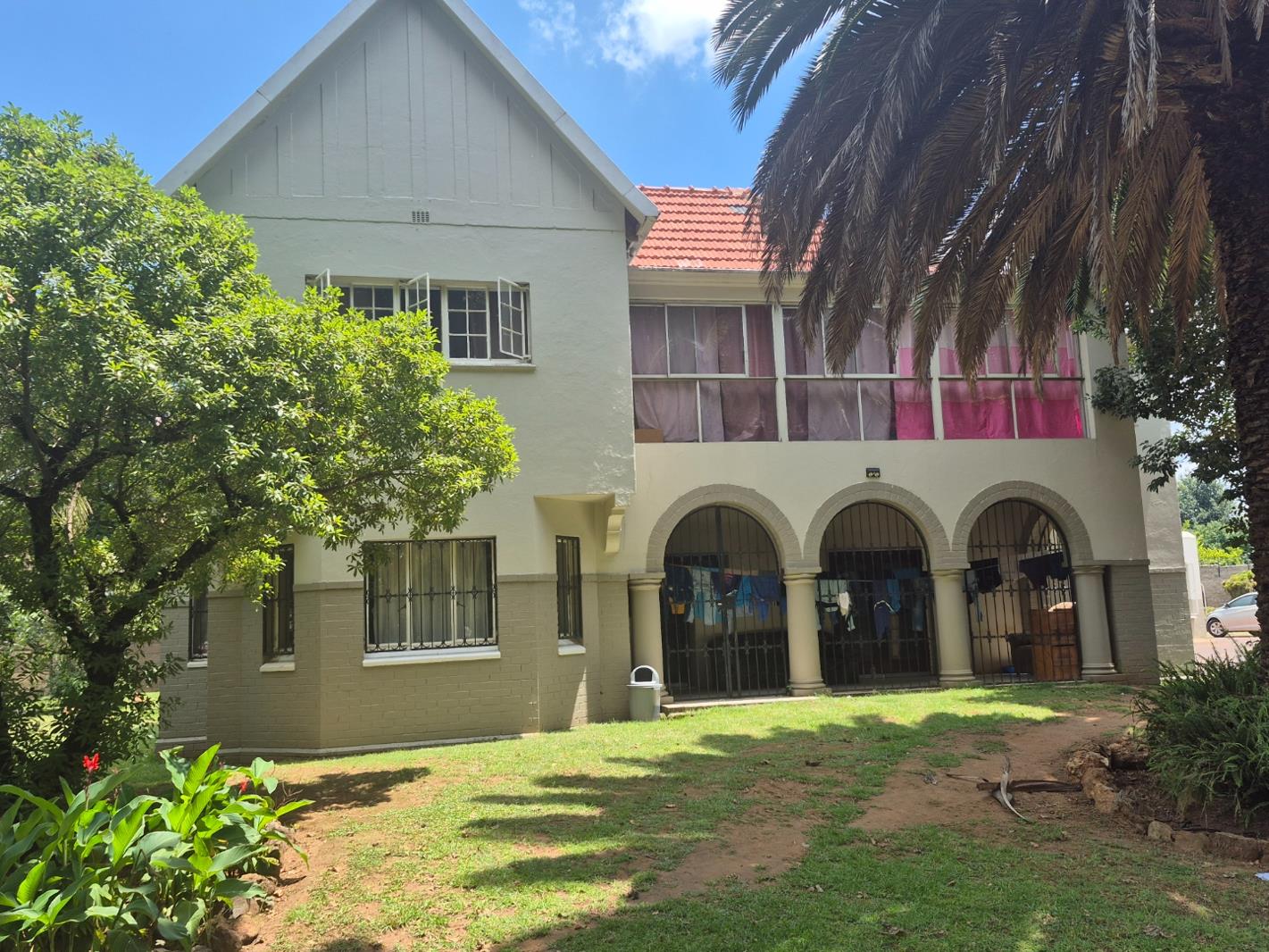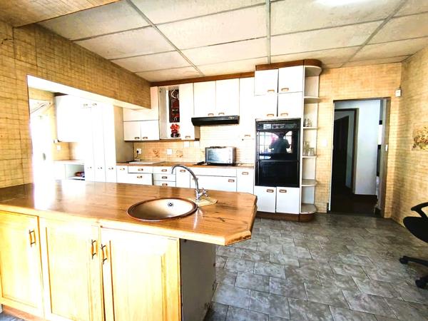 Discover this impressive two-story residence, boasting a classic red tiled roof and a charming two-toned exterior that exudes traditional appeal. Set on a generous 4047 sqm erf, the property features a large, lush garden with mature trees, creating a private oasis for relaxation and outdoor activities. Enjoy leisurely moments on the patio or take a refreshing dip in the swimming pool. The expansive grounds also include a paved driveway offering ample parking for up to ten vehicles, complemented by three dedicated garages and additional storage space, ensuring convenience for residents and guests alike.