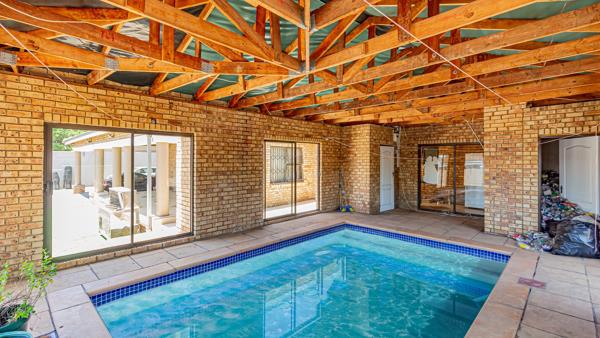 Beyond the main living areas, enjoy the unique luxury of an indoor swimming pool, perfect for year-round recreation. The property also includes staff quarters, a well-maintained garden, and extensive paving, offering a blend of leisure and practicality. Situated in the suburban area of Lambton, Germiston, this home provides a secure and convenient lifestyle within a well-established community.