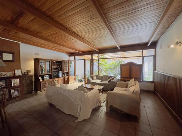 This property is situated on a large stand with the main house comprising of 3 spacious bedrooms with built-in cupboards, 2 bathrooms main en-suite,2 guest toilets, lounge and dining room, a fully equipped kitchen, separate laundry room, familyTV room, office space study or additional entertainment room with a built-in bar.