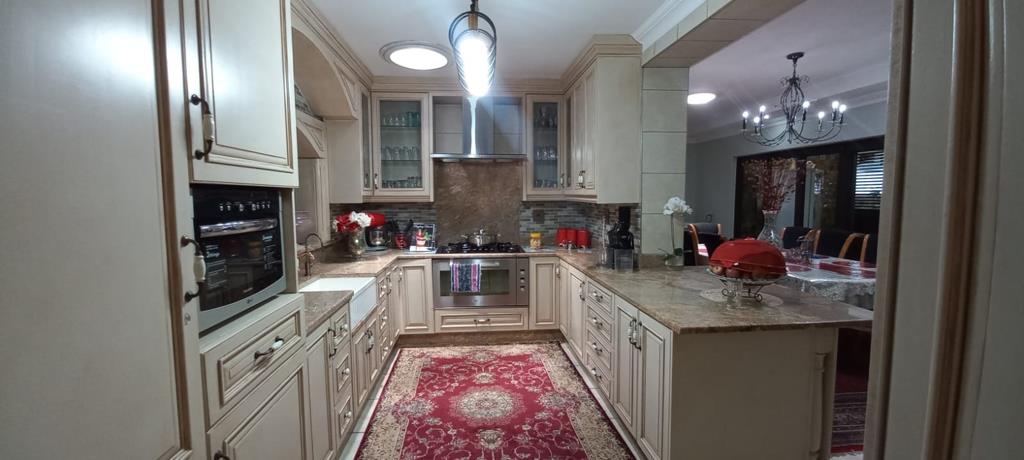This home has six spacious bedrooms with built-in wardrobes ensuring ample storage space. This home offers three bathrooms - one being an onsuite to the main bedroom which also has its own walk in dressing room. This home is immaculate and well maintained with amazing views. This home offers a well sized open plan wife saver kitchen with scullery, pantry, gas stove, granite countertops and loads of cupboard space. The second lounge has an adjoining open plan, a gracious lounge and a dining room area that is big enough for relaxation and family time. This home also offers a home office and a kids playroom.