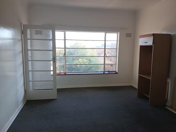 The charming flat features a beautiful kitchen with white cupboards and a gas stove. The lounge leads onto an enclosed balcony that can be used as a second bedroom or study. The large first bedroom includes floor-to-ceiling built-in cupboards. The bathroom has a modern finish with a shower, basin, and toilet, as well as enough space for a washing machine. This unit also boasts a gas geyser, resulting in low electricity costs and the ability to enjoy hot water during load shedding. Electricity is prepaid.