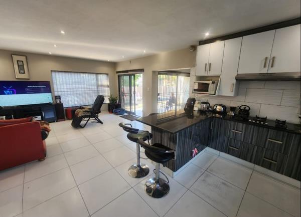 Outside there is an ultimate relaxation area with a sparkling swimming pool, fire pit, covered patio with built-in braai perfect for hosting parties or family gatherings. There are also double garages and extra parking for visitors. This home offers one bedroom flatlet witha lounge, kitchenette, bathroom with a shower, basin and toilet - ideal for staff accommodation, guest or rental income. There is also a beautiful garden outside. For security there is a security gate, security beams and an alarm system.