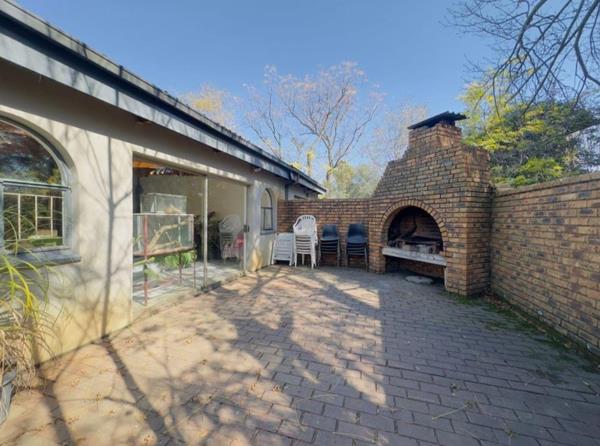 There is also a jacuzzi and a well sized garden with a sparkling swimming pool, outdoor braai area, 2 garages, 2 enclosed carports and ample extra parking. 2 Separate entrances to the property also makes it convenient.