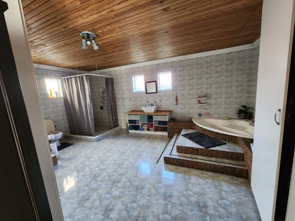This is a very beautiful four bedrooms house. The house has four beautiful bedrooms with modern fittings. The main bedroom has an ensuite and built-in wardrobes. The bedrooms are very spacious with built-in wardrobes. The house has a beautiful separate kitchen with modern fittings and granite top and separate two lounge areas and sitting room. The house has two bathrooms. The house has a two-bedrooms flatlet and lapa. The house is massive and has three parking garages, sufficient open parking spaces, storage and pool. This is a house to move in and settle. It is located in a very quiet and peaceful area.