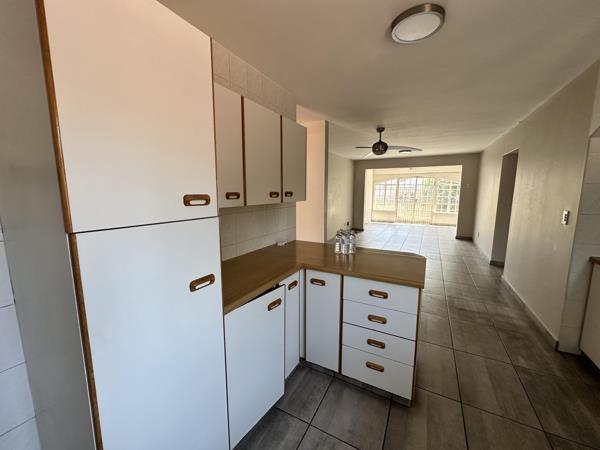 The open-plan layout connects a spacious lounge and dining area to a functional kitchen, creating a warm and inviting living space. For added convenience, the unit includes two parking bays one covered and one open.