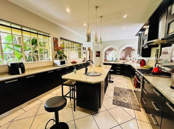 Inside, the home is designed for comfortable and convenient living. An open-plan layout, highlighted by elegant architectural arches, seamlessly connects the living and dining areas, promoting a sense of flow and spaciousness. At the heart of the home is a modern kitchen, a culinary enthusiast''s dream, featuring sleek dark cabinetry, luxurious granite countertops, and two functional islands that serve both as prep areas and casual dining spots. The kitchen is equipped with high-quality stainless steel appliances and benefits from excellent lighting. Additional features include a practical utility area and a dedicated family TV room, enhancing the home''s versatility for family needs.