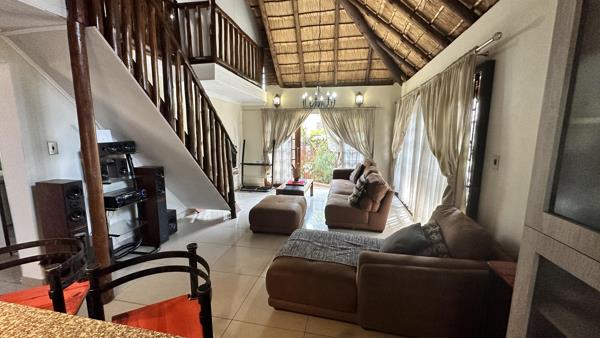 Both bedrooms have chandeliers, plenty BICs, are tiled and have profiled ceilings and cornices. The main bedroom has a built-in dressing table and the main-en-suite is tiled to the ceiling with a frameless glass shower and a vanity. The main bathroom has a shower and a corner bath and the tiles create a very rustic atmosphere. The spacious loft is a perfect third bedroom and can also back-up as a guest room or a study for those working from home. The scullery has matching cabinets and space for 2 appliances. At this home you will feel like you are on holiday all the time! Outside is a private garden with an automated sprinkler system and two IBR carports a short walk away. All windows are wooden with burglar bars and blinds and let in lots of air. The complex has fibre and the units have pre-paid electricity. The home and the complex is very safe and very private. The sparkling pool is close by and it is even pet friendly. The home and the whole complex is as neat as a pin. Electricity is pre-paid.