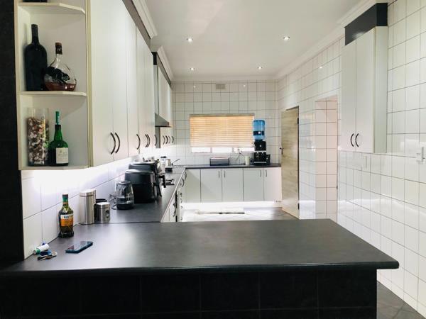 The property includes a refreshing swimming pool, a charming lapa for al fresco dining, and a beautifully maintained garden. With a double garage and six additional parking spaces, there is abundant secure parking for residents and guests. Further enhancing its appeal are domestic rooms, offering flexible accommodation options. The property is totally walled and features burglar bars, providing peace of mind. Pets are also welcome, making this a complete family haven.