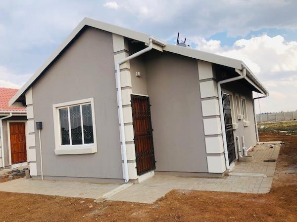 A brand new home in a well developed suburb. The property comes with Solar geysers, 4 plates stove, and to top it up a free 32 inch TV with every successful purchase. The property offers 2 bedrooms, 1 bathroom, lounge area and an open plan kitchen.