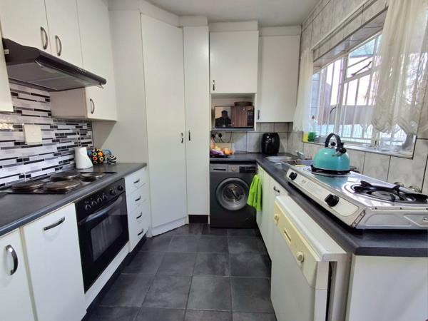 Downstairs , step into a modern open-plan lounge and dining area, perfect for entertaining or simply enjoying quality time with family and friends. The stylish kitchen is designed with ample working and storage spaceready for your culinary creations. For entertaining family and friends outdoors for a braai , you have 2 options , at the front of the Unit, you have a lawn garden and then at the back, you have a concrete private courtyard , with a carport.