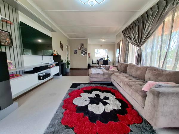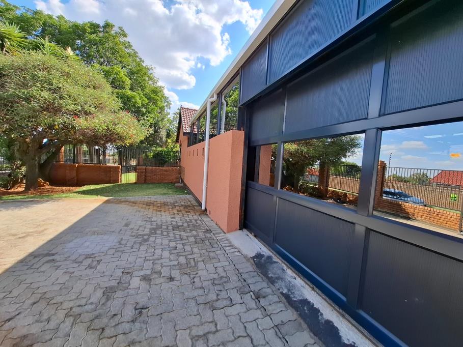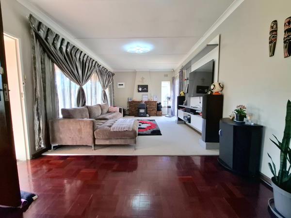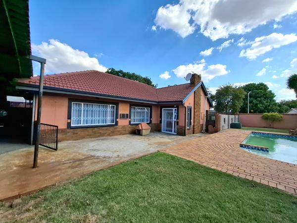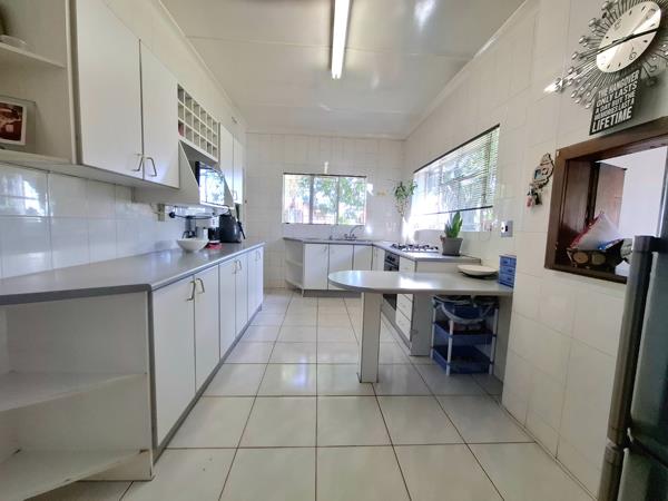 The outdoor area is a true highlight, featuring a private swimming pool perfect for summer enjoyment and a paved patio for alfresco dining. The expansive garden provides ample space for pets and outdoor activities. With space for 4 vehicles behind Aluminium framed sliding door and a Lock-up garage and four additional parking spaces, this property caters exceptionally well to vehicle storage. Practical amenities include a laundry room, storage, domestic rooms with outside toilets, and a flatlet for potential rental income or extended family. Security is enhanced with burglar bars, and fibre connectivity ensures modern living.