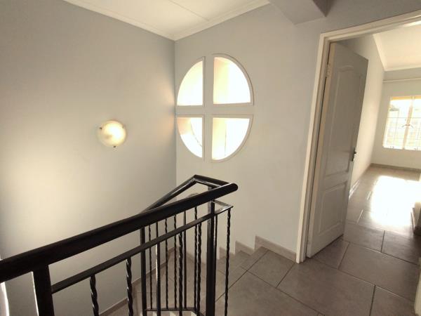 This 1st floor apartment is spread over 2 floors, connected by an internal staircase. At the bottom is the kitchen, with space for 3 appliances and a good number of cupboards. The lounge is generously sized and leads to a sunny north facing balcony.