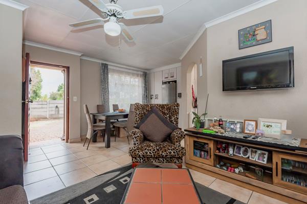 Open-Plan Lounge & Dining Area with extra cupboard space. 3 Bedrooms,1 Bathroom with separate Toilet. Children can run and plan in the large garden or if you are a kid at heart and love entertaining and playing out door games then this garden is for you. There is a Braai under a thatched Lapa so you have protection from the great South African sun.