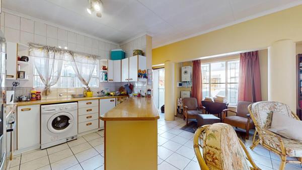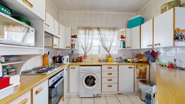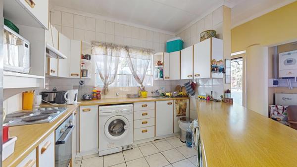 Step inside to find three well-sized bedrooms with built-in cupboards, providing ample storage space. The open-plan lounge and kitchen create a welcoming atmosphere, perfect for entertaining or relaxing after a long day. The kitchen is designed for functionality, offering sufficient cupboard and counter space.