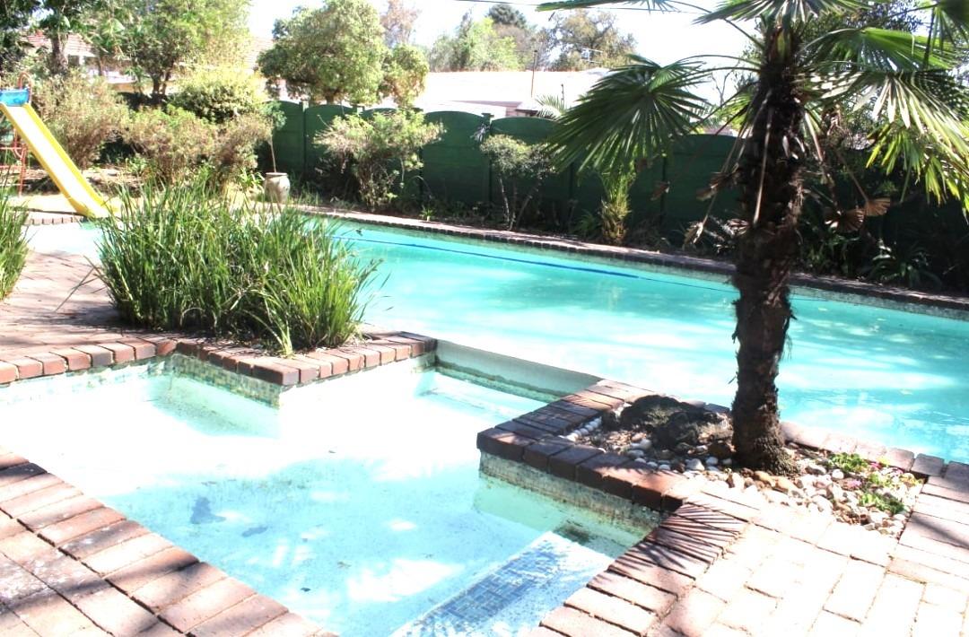 Outdoor living is a highlight, with a large garden, a refreshing swimming pool, and a welcoming patio perfect for relaxation. Enjoy year-round entertaining in the braai room, equipped with a built-in braai. Parking is abundant with two garages and an additional six open parking spaces. The property also includes staff quarters and a separate garden cottage, offering potential for extended family or rental income. Practical features such as a borehole and storage further enhance the property''s appeal.