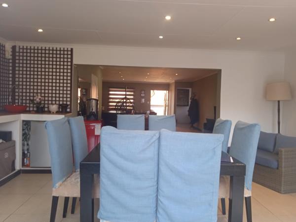 Pool, braai area, double garage, and irrigated garden with rainwater tanks plus 8,000 L underground storage. Security includes an electric fence and cameras.