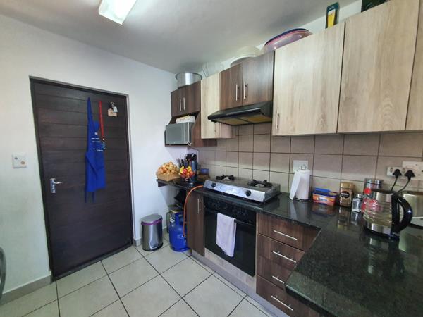 Step into a spacious open-plan living and dining area that flows effortlessly through sliding doors into a charming private gardenideal for morning coffees or relaxed weekend braais. The modern kitchen features granite countertops, ample cupboard space, and an eat-in counter, making it both functional and inviting.