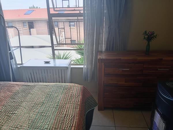 The open-plan lounge connects to a modern granite-top kitchen, offering both style and efficiency. With prepaid electricity and tiled flooring throughout, this unit is move-in ready and easy to maintain.