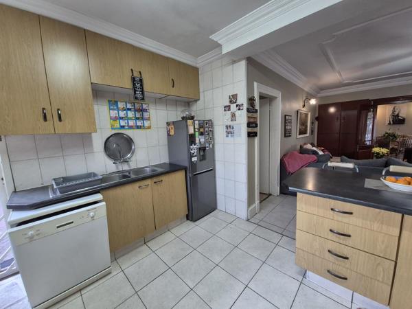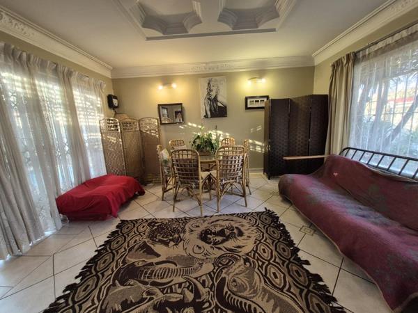 Adjoining the lounge you will find a dining room separated by wooden, cottage doors. This super spacious room creates a warm setting for family meals and festive gatherings and leads out to a lovely patio area where you can sit under a Louvre awning.