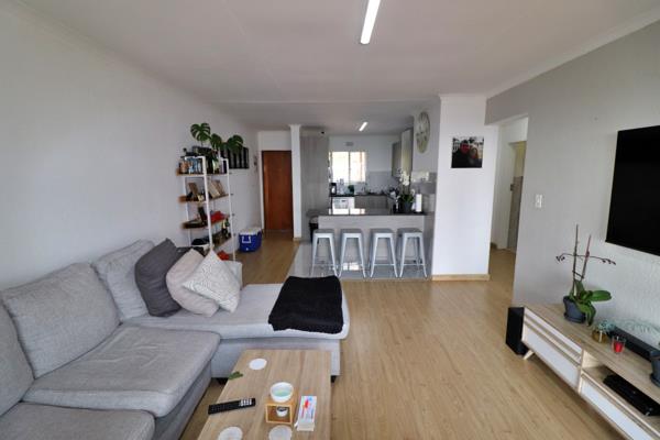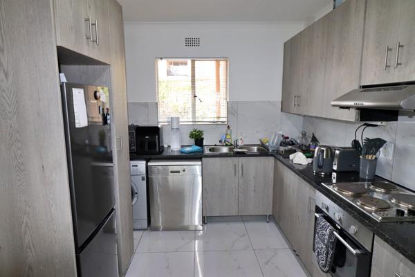 Discover contemporary living in this inviting 2-bedroom, 2-bathroom apartment located in the desirable suburban area of Primrose Hill, Germiston. Spanning 85 square meters, this residence offers a thoughtfully designed open-plan layout that seamlessly connects the living spaces. The modern kitchen is a highlight, featuring stylish light wood-grain cabinetry, dark granite countertops, and integrated appliances including an oven, hob, and extractor fan. Tiled flooring in the kitchen transitions smoothly into the laminate flooring of the spacious lounge, which benefits from abundant natural light and provides direct access to a private balcony.