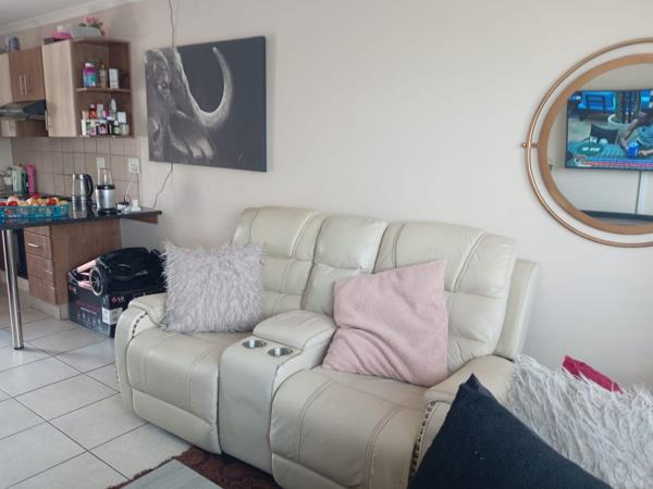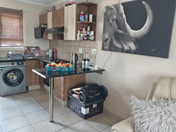 A Galley kitchen opens into the lounge, leading off to a generous size bedroom with built in cupboards and an en-suite bathroom. Apartment fully tiled.