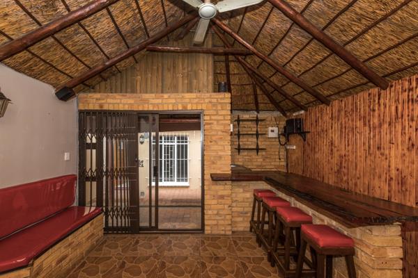 Spoil your guests with this bonus Lapa - Entertainment area, with Bar, 6 bar stools, fitted built-in seating with storage compartments plus a built-in-braai and more. Sliding Aluminum Glass door and Trellidor security gate. Valued at about R250,000