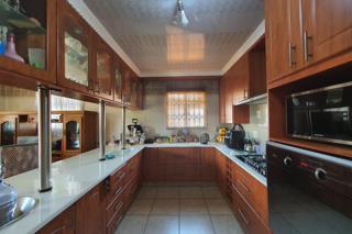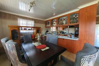 The kitchen is a standout feature, equipped with built-in cupboards, a gas stove, extractor fan, eye-level oven, pantry, and a separate scullery ideal for those who enjoy cooking and entertaining. A dedicated dining area flows seamlessly from the kitchen, creating a warm and welcoming atmosphere for family meals.