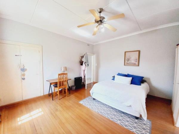 -Main bedroom: wooden floors, ceiling fan, modern en-suite (bath, shower, basin, toilet)