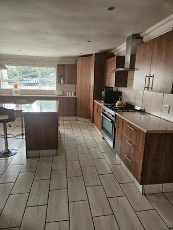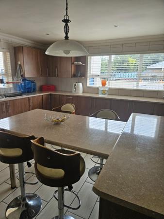 The outdoor area truly shines with a crystal-clear swimming pool alongside a thatched lapa, complete with a built-in braai. This creates an ideal setting for relaxed weekend entertaining and family gatherings.