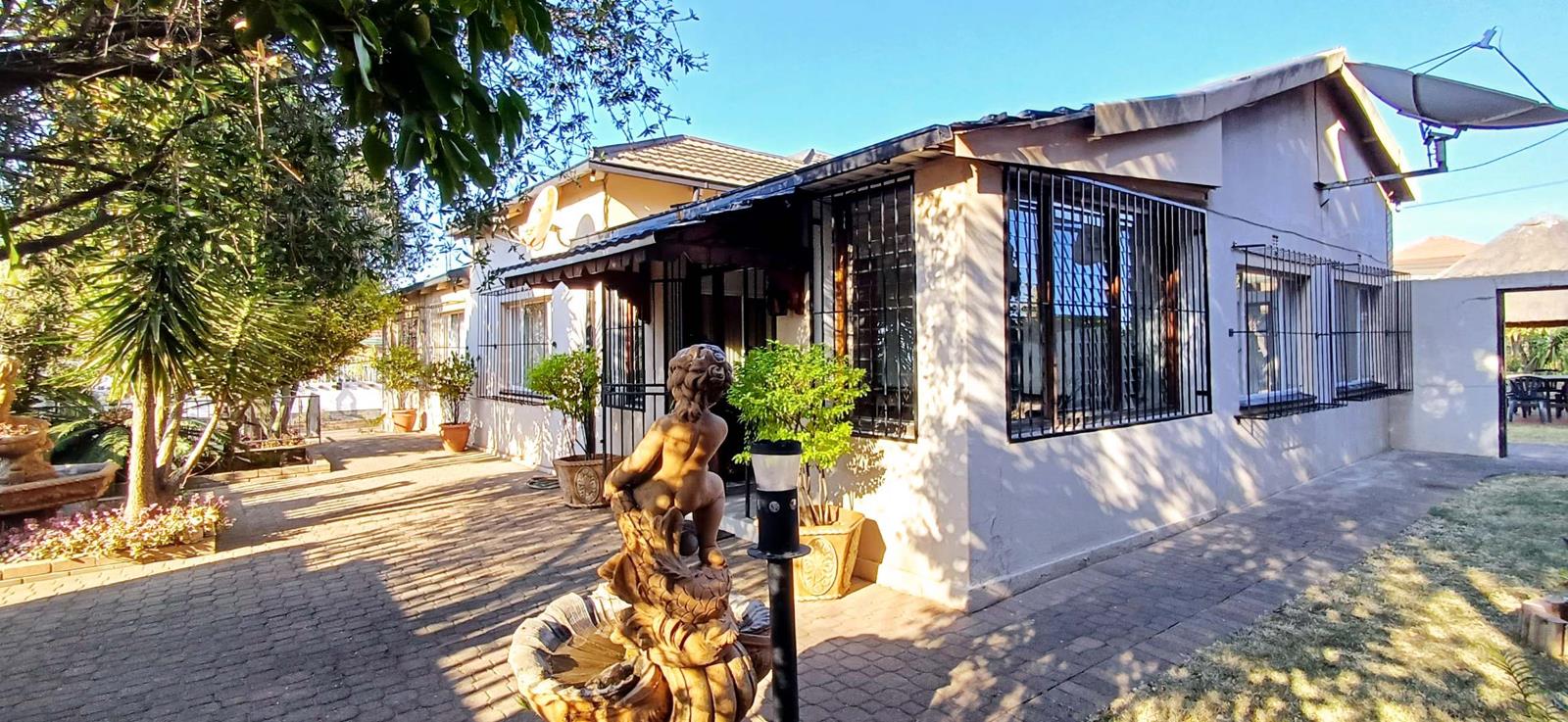 Outside, you''ll find a thatch Lapa with a braai area, a double garage with additional parking space, providing convenience for multiple vehicles.