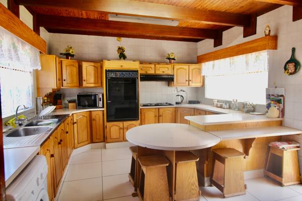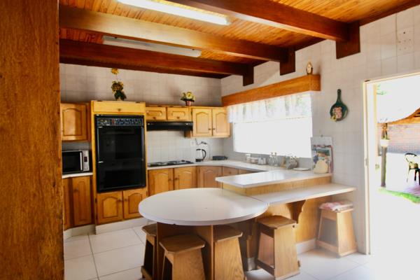 Outside immaculate garden with lapa, storeroom, large entertainment room, double garage with a workshop and double carport.