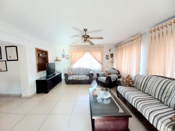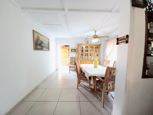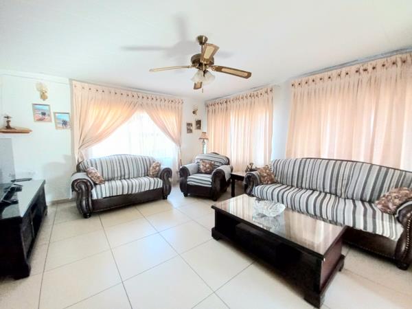 All living areas are tiled, while the bedrooms offer the comfort of carpeting! Enjoy a spacious lounge, a TV room with pressed ceilings, a dining room with a ceiling fan, and a sunroom! The main bedroom includes an ensuite bathroom, and all bedrooms feature built-in cupboards! Outside, a thatched lapa is perfect for entertaining, and additional outside rooms provide extra versatility! This solid and spacious home with quality finishes is a must-see!
