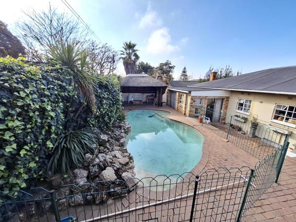 Open plan dining/TV room and bar area. Sliding door opens up to a lovely sparkling pool, entertainment area and built in braai.
