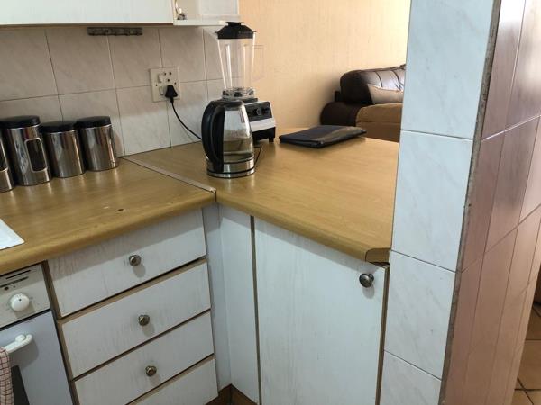 Kitchen with ample cupboard space, scullery area, single fridge slot & under-counter appliance space