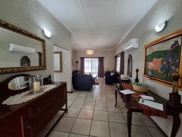 Garden has been beautifully laid out and manicured. Home is secured by an electric fence, burglar bars, an alarm and cameras.