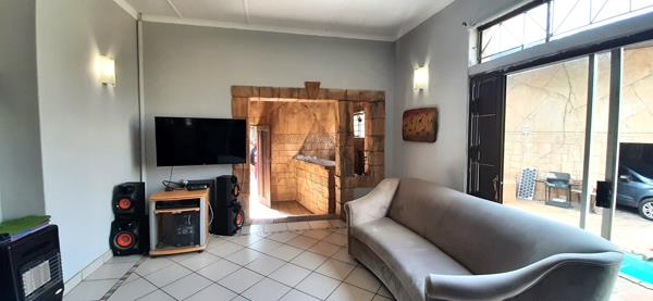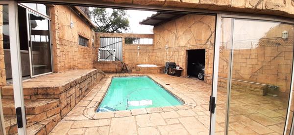 Lounge leads out onto entertainment area with pool, jacuzzi & built in braai.