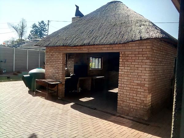 Enjoy a spacious property with 4 bedrooms, 2 bathrooms, basement wine cellar, plenty of parking space, a well-constructed entertainment area with a lapa and braai area, swimming pool, staff quarters and newly built 2 bedroomed cottege.