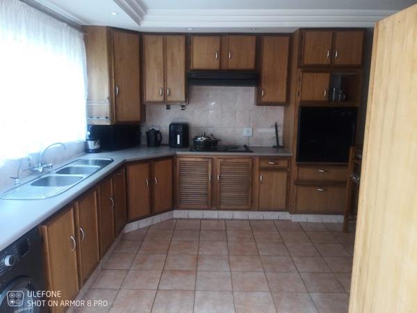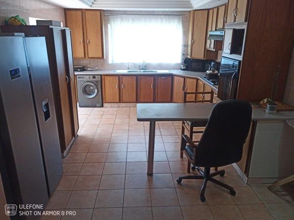 The heart of the home lies in the spacious kitchen, boasting classic built-in cupboards, a 4-plate stove with an oven hub, and a convenient breakfast nookcenter island perfect for casual meals and gatherings. The dining room, lounge, and sitting room provide ample space for relaxation and entertainment.