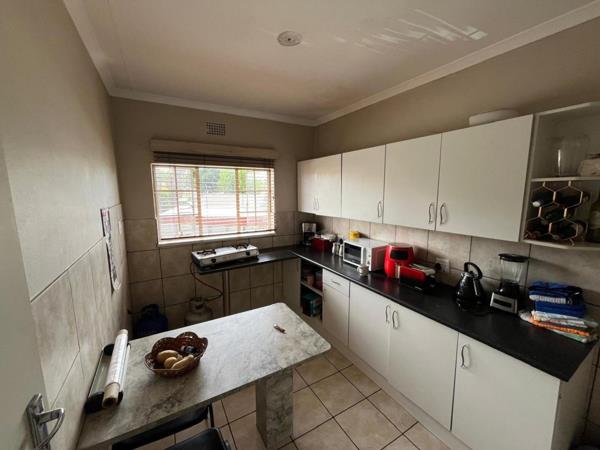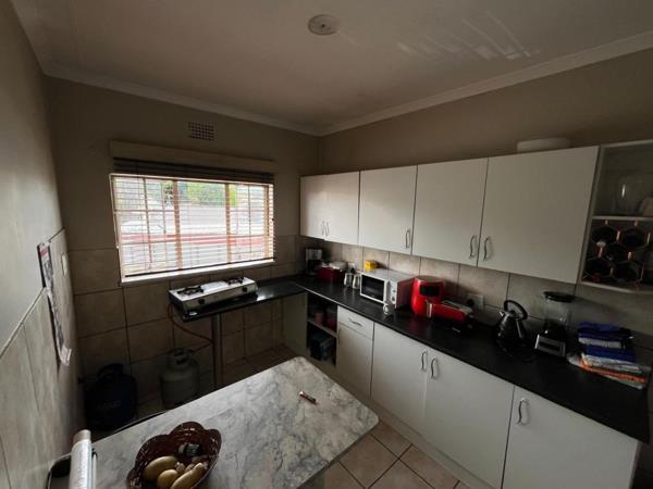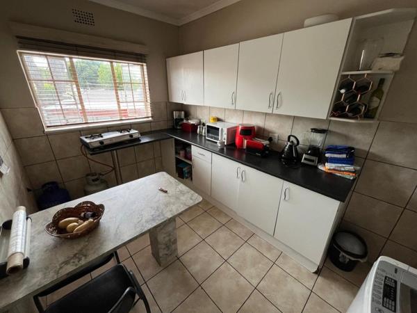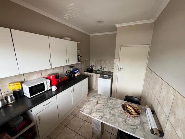 Kitchen: Ample cupboard space with a mix of melamine and granite finishes