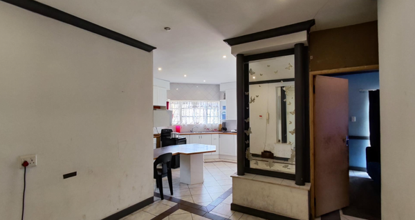 This single-story residence in Primrose, Germiston, presents a solid foundation for comfortable family living. The property features a recently painted white exterior and a paved brick driveway, offering a clean initial impression. Enhanced security is a key aspect, with strong window bars, security gates, and an electric fence providing peace of mind. While some areas show signs of wear, such as minor cracks in boundary walls and overgrown paving, these present an opportunity for personalisation and enhancement to truly make it your own.