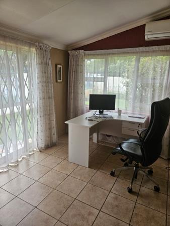 sized bedrooms with built in cupboards,lounge and separate dinning room,two bathroom one being en suit,thew study can be used as a fifth bedroom.One bedroom flatlet own kitchen and bathroom and own geyser.beautiful entertainment area with sparkling pool and lapa.Two garages and lots of additional parking and so much more to mention on this emmaculate property