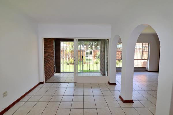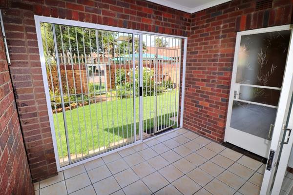 This 159m2 unit offers tiled lounge, dining room, enclosed patio, large kitchen leading to small back court yard, 3 spacious and sunny bedrooms all with built in cupboards, 2 bathrooms 1 M.E.S, parking is provided by a single garage with direct access to the unit as well as a single sperate carport. The garden is well maintained and offer the perfect space for a small pet. The complex offer easy access to transport, and is within walking distance to schools and shops.