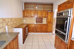 Step inside to find a thoughtfully laid out interior featuring clean white walls and durable tiled flooring throughout, ensuring a bright and airy atmosphere. The spacious open-plan living area, including a lounge and dining room, is enhanced by natural light streaming through large sliding glass doors that open to the garden. Arched doorways add a touch of character to the flow of the home. The kitchen, while presenting a traditional aesthetic, is highly functional with extensive wooden cabinetry, a built-in double oven, and a double sink, offering generous storage and preparation space.