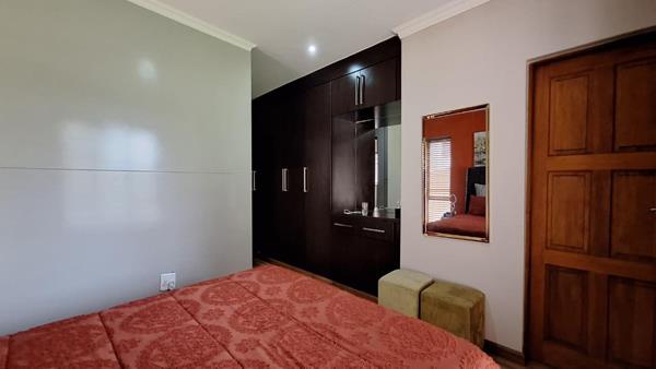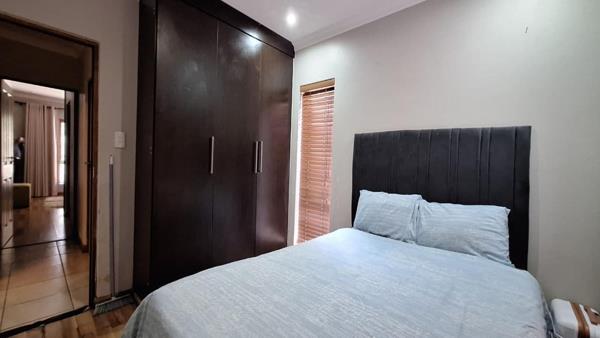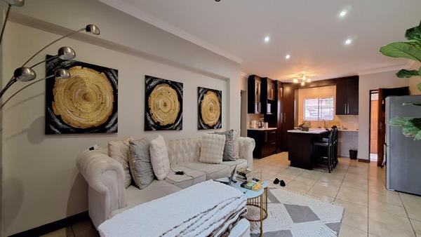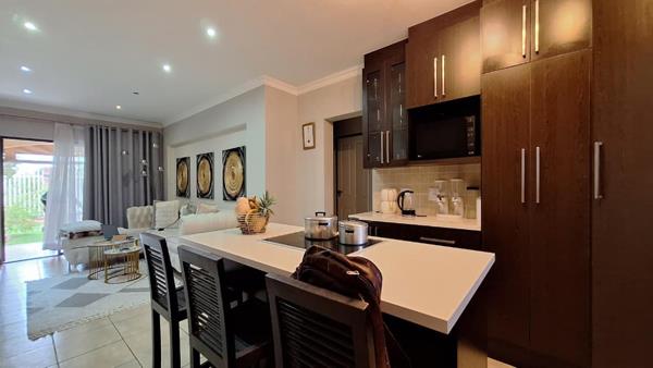 Sliding doors from the living area open to an outdoor green space, perfect for relaxation. The property also benefits from paving and a garden. Situated in Primrose, Germiston, this location offers convenient access to local amenities and transport routes, making it an ideal choice for those seeking a balanced lifestyle within a secure environment.
